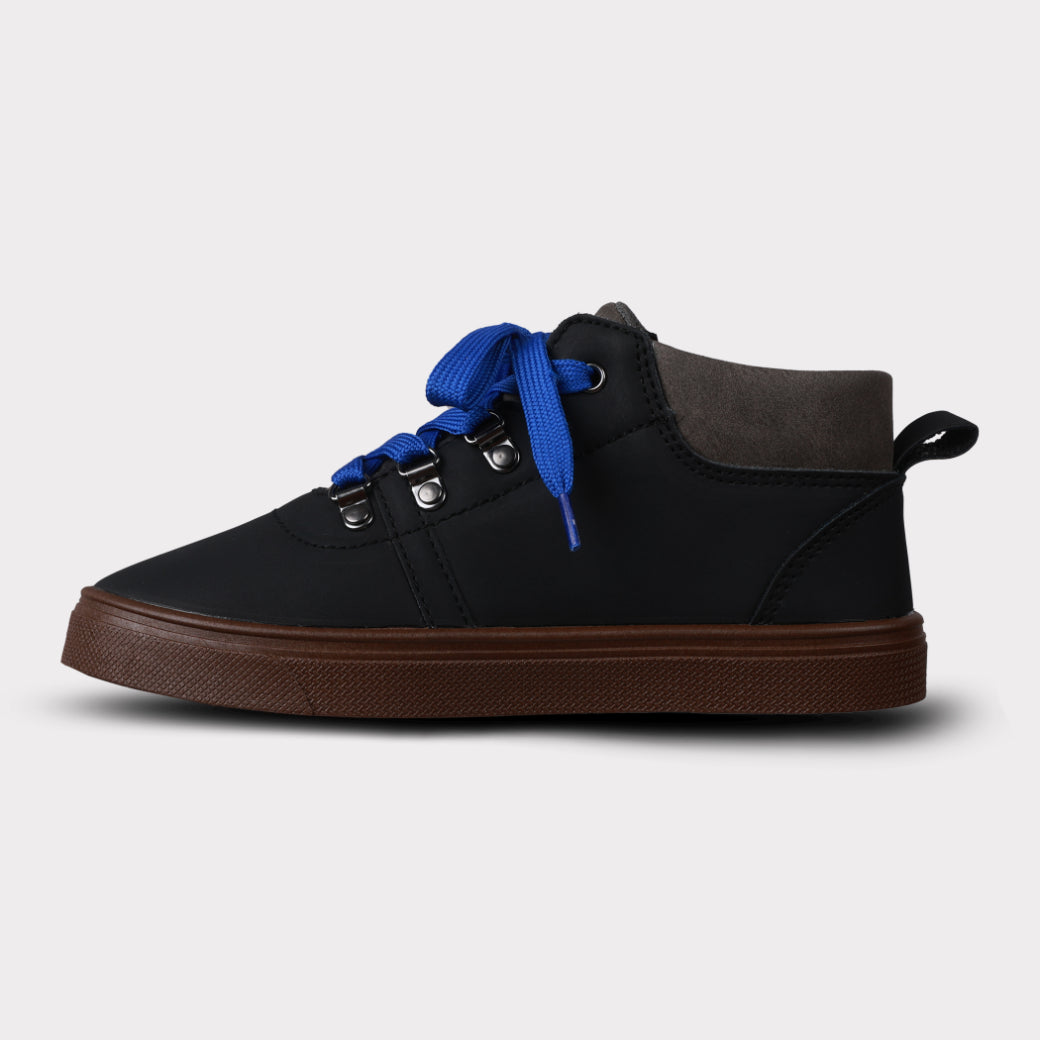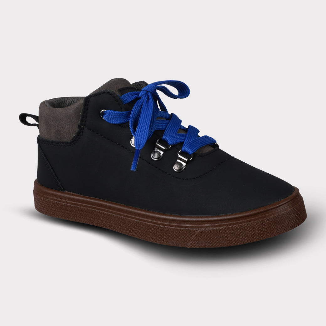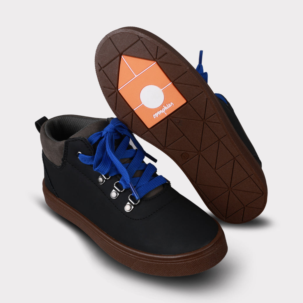 Introducing the Hudson Youth, a hiker inspired shoe boot for boys. Built atop our classic Oomphies outsole and foam cushion footbed, the Hudson utilizes a tonal PU upper and a breathable mesh lining. Pop color hiking-inspired elastic laces and d-ring eyelets bring the shoe boot to life. This great lace-up sneaker will be sure to be a favorite! The Hudson sneaker collection is perfect for outdoor exploring, so the fun never has to stop! Oomphies kids' shoes are kid-friendly and parent approved!