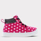 Express yourself with our Sam shoe! The perfect stylish and sweet high top sneaker, all season long. This fashionable high-top sneaker. is oh so stylish, super comfortable and the easiest to get on and off! Featuring a variety of colors and patterns that will easily match with that new romper or dress. Perfect for that upcoming school play or play date.
