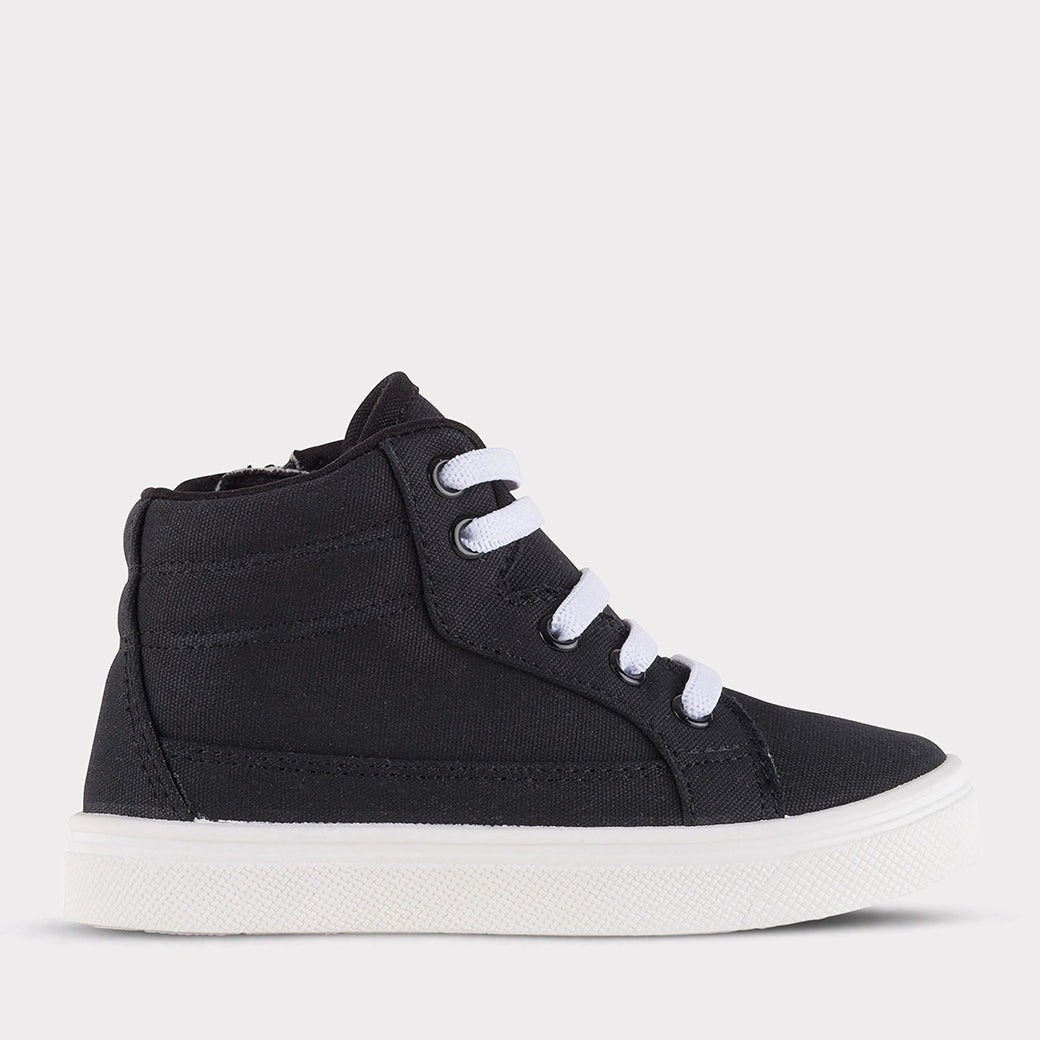 The Tyler high-top sneaker is a kid favorite for both school and playtime. This classic design is easy to wear with both a zipper on the medial side and laces up top and features a cushioned insole for extra comfort. Oomphies kids' shoes are kid-friendly and parent approved!